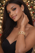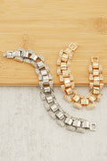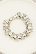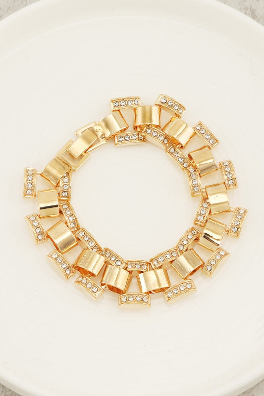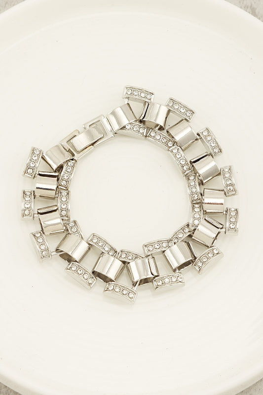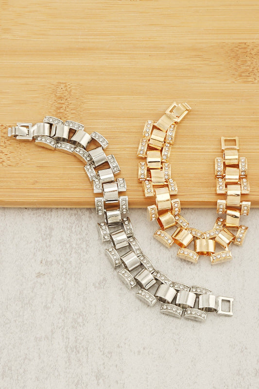 Curved Bar Chain Bracelet With Rhinestone Rows