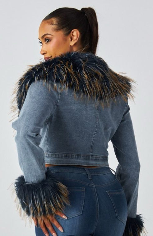 Faux Fur Trim Crop Denim Jacket