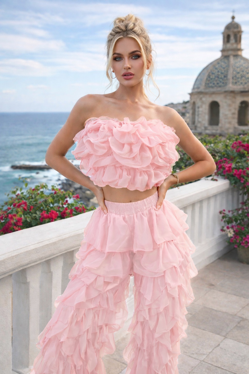 High Waisted All Over Ruffle Pants