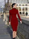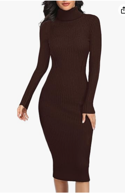 Long Sleeve Turtle Neck Midi Sweater Dress