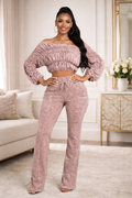 Mineral Wash Ultra Ruched Cropped Blouse & Elastic Waist Lounge Pant