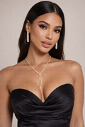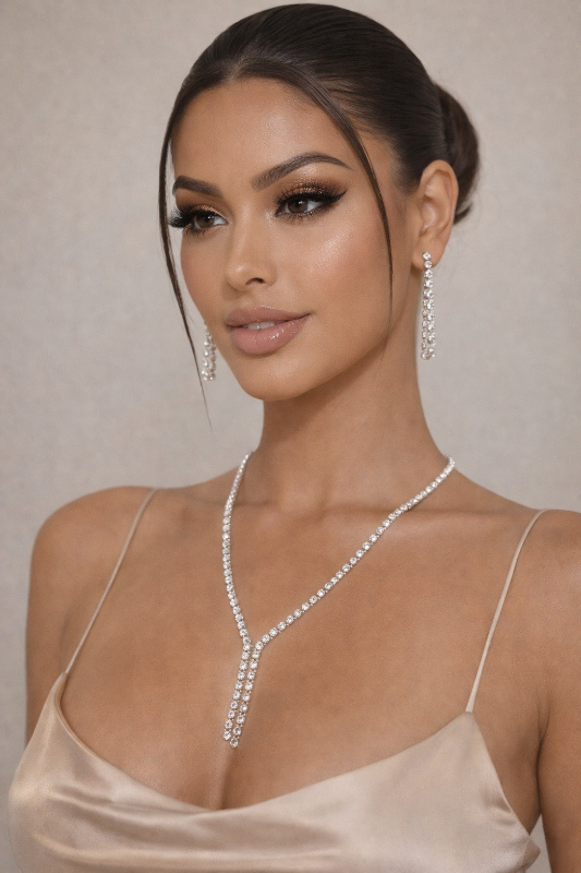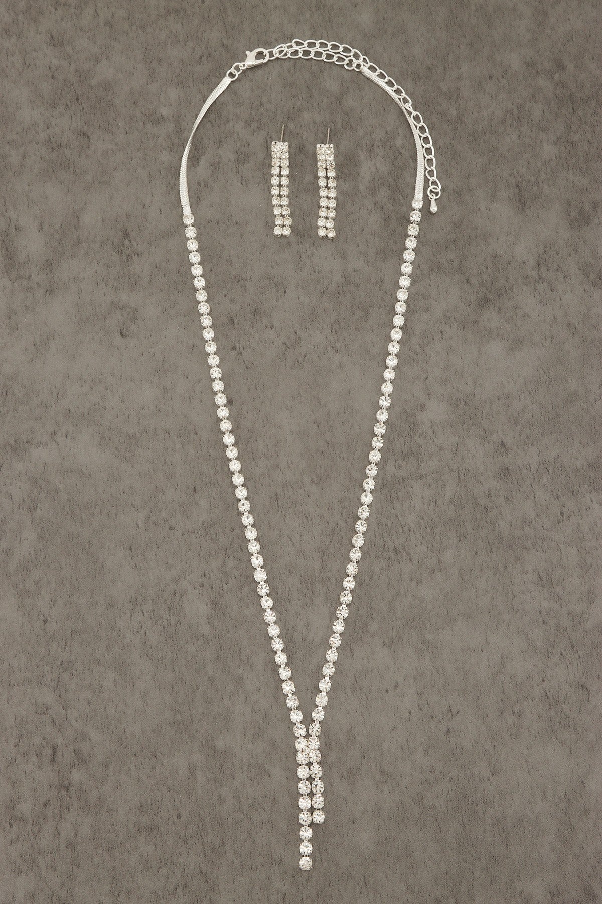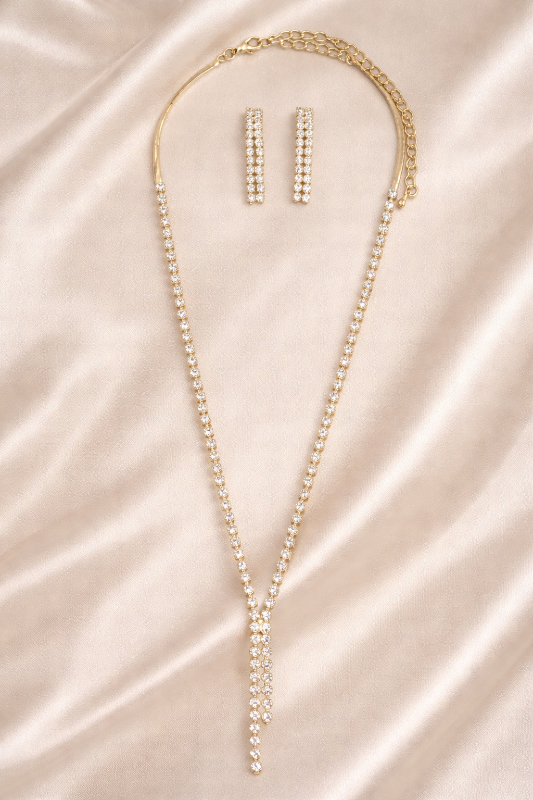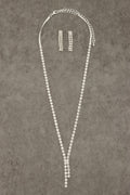 Elegant rhinestone double line necklace set featuring a Y-drop design with matching earrings. Perfect for night-out and special occasions