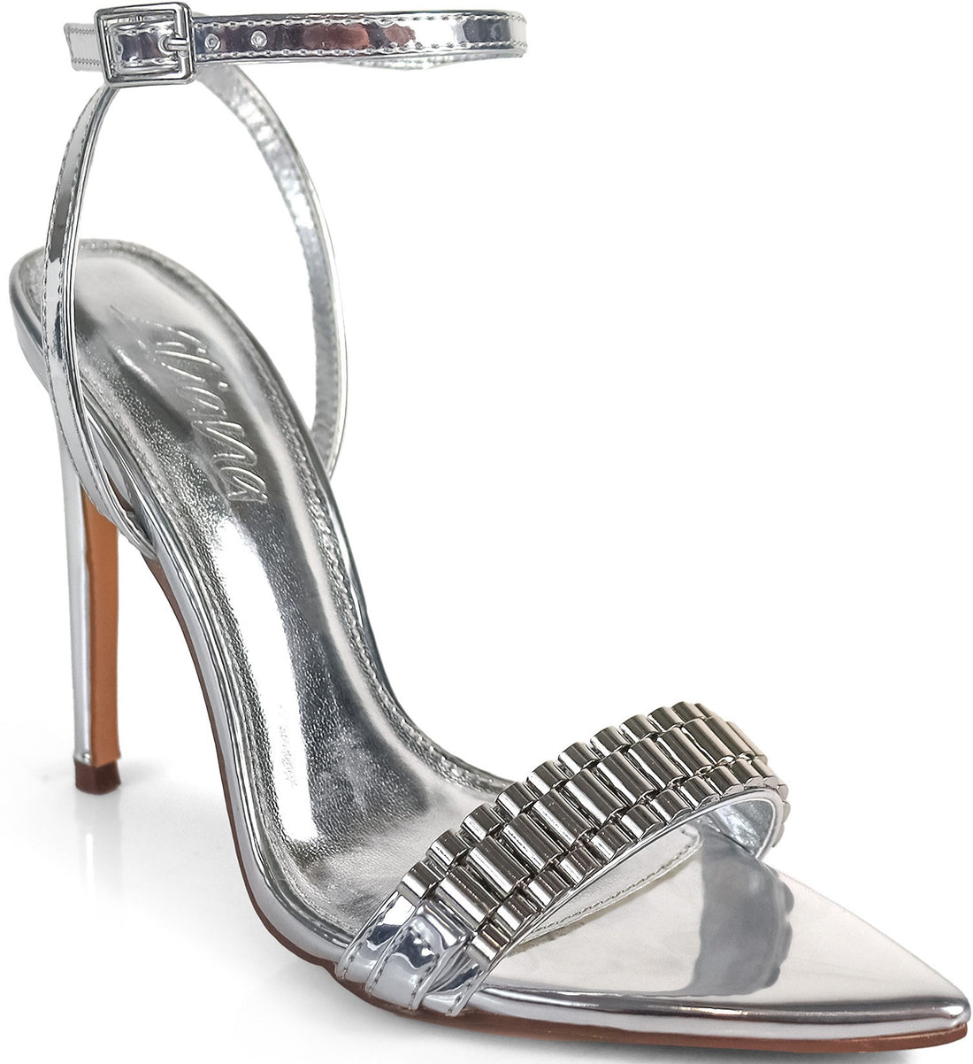 Open Toe Double Ankle Strap Heels With Pearl And Gems