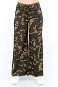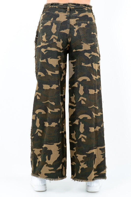 Camouflage Frayed Edge Wide Leg Pants