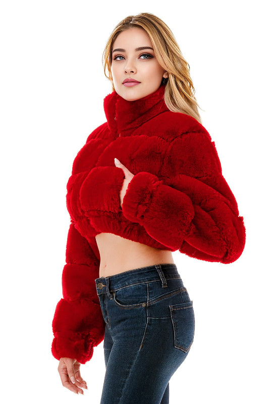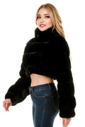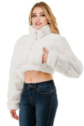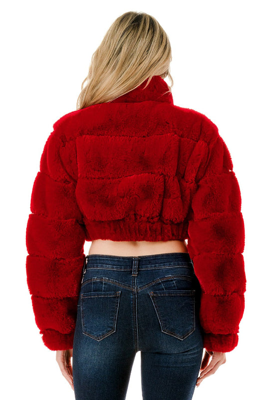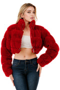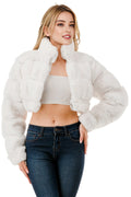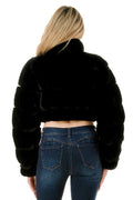 Cropped Puffer Faux Fur Jacket With Hoodie