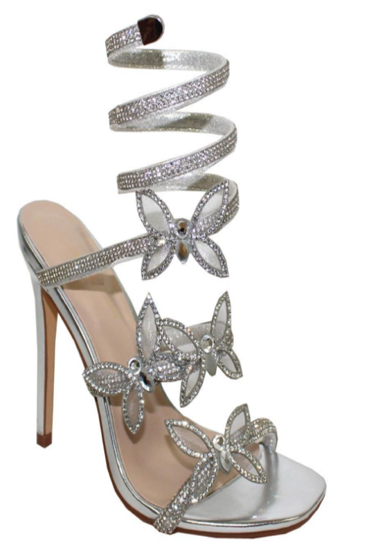 Elegant Wrap-Around Ankle Heel with Gemstone & Butterfly Accents