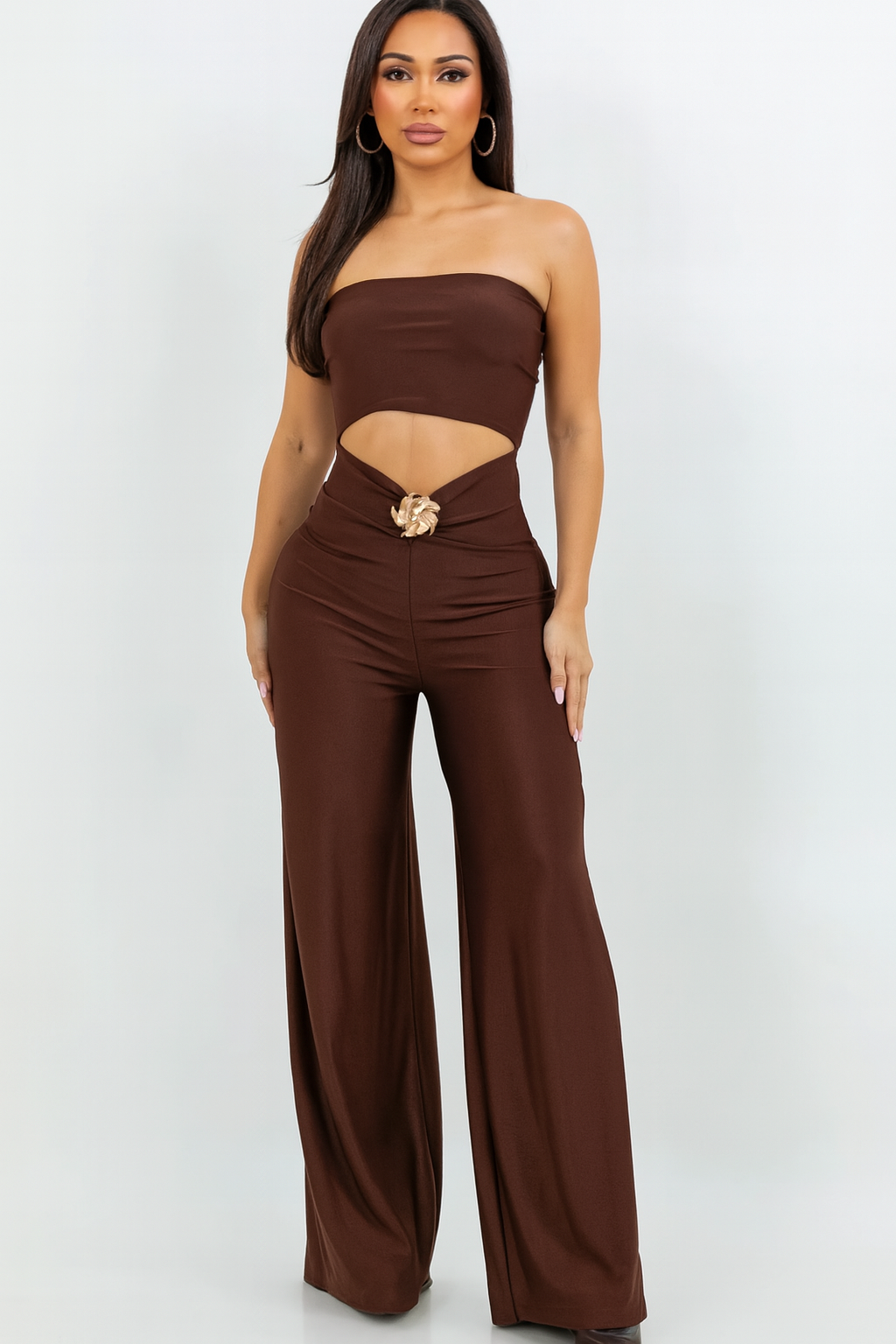 Ice Scuba Tube Jumpsuit With Metal Trim and Cut Out