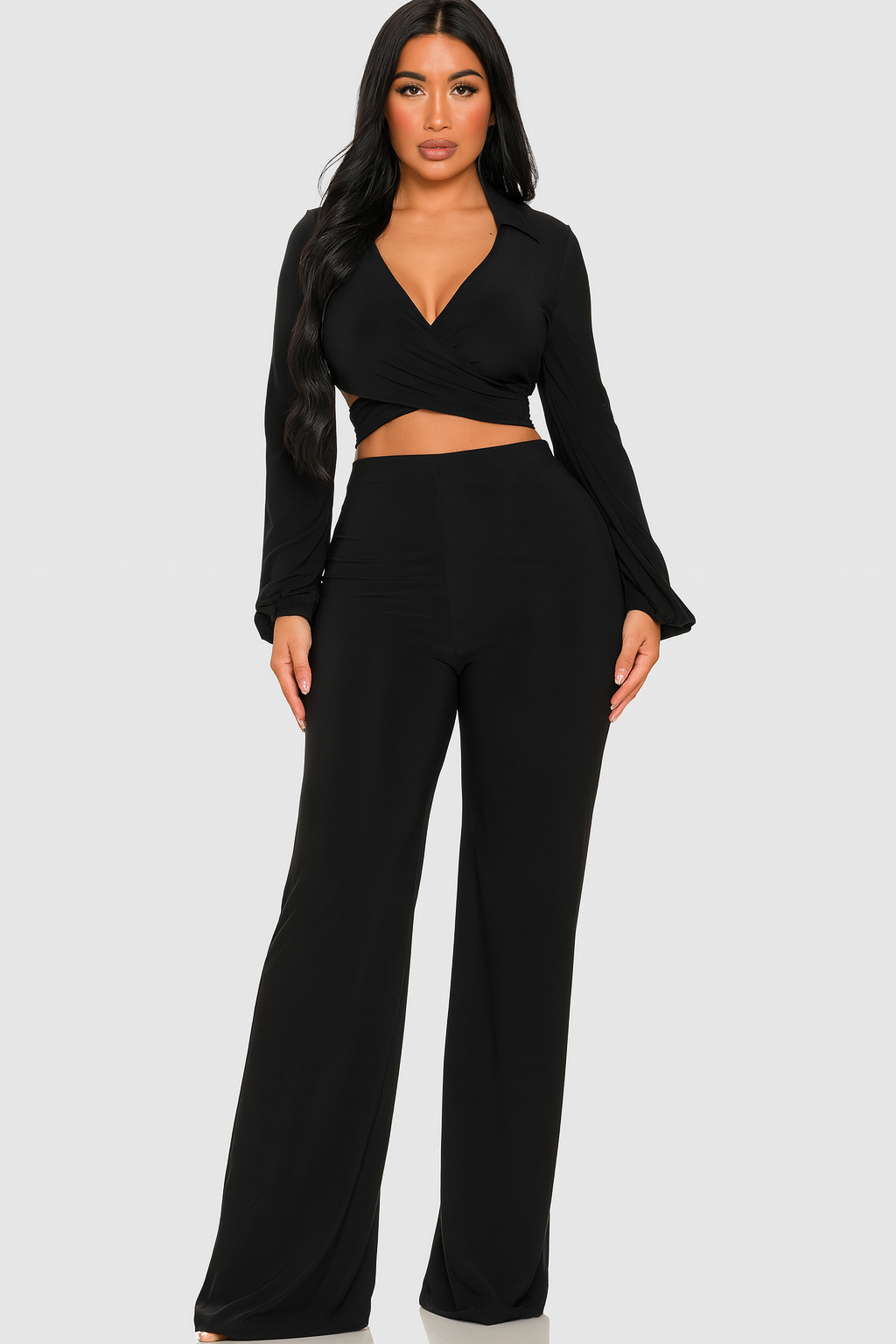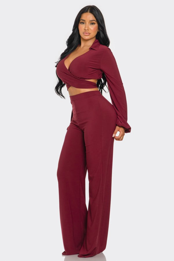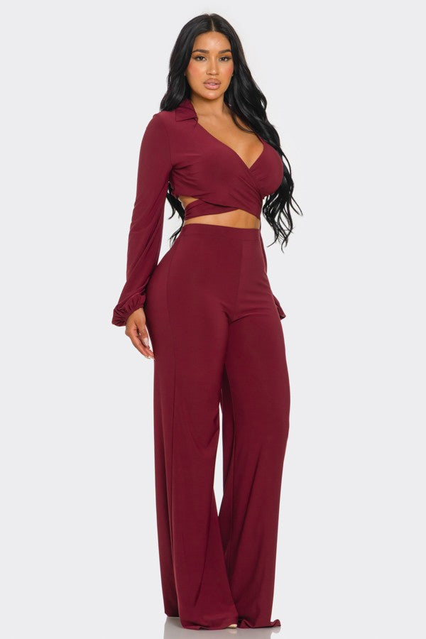 L/S Criss Cross Top and Wide Leg Pant Set