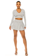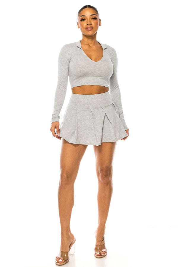 Pleated Skirt Set with Long Sleeve Top