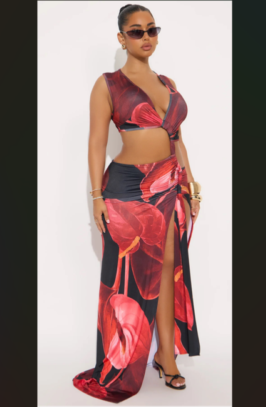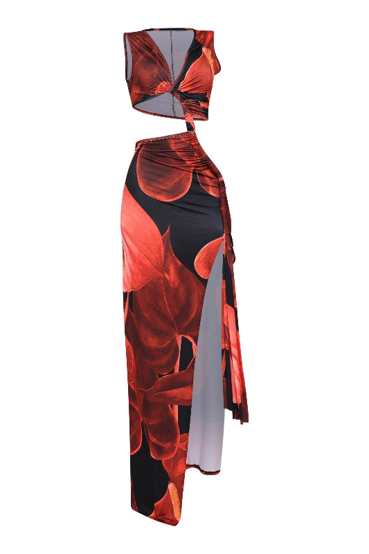Printed Cut Out Detail Ruched Dress