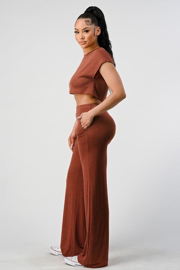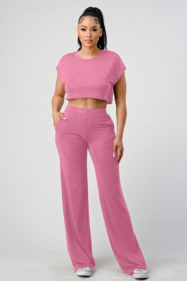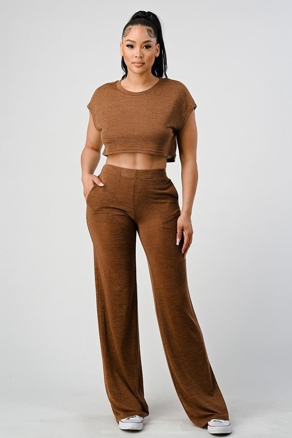 Short Sleeve Crop Top and Wide Leg Pant Set
